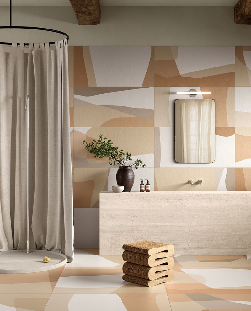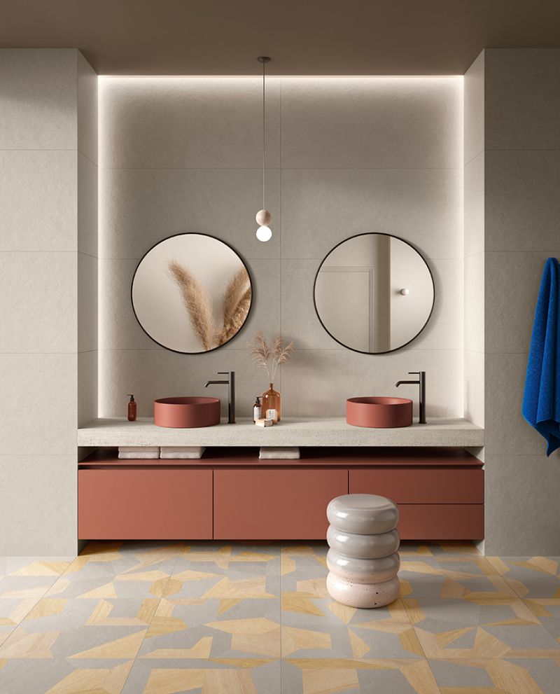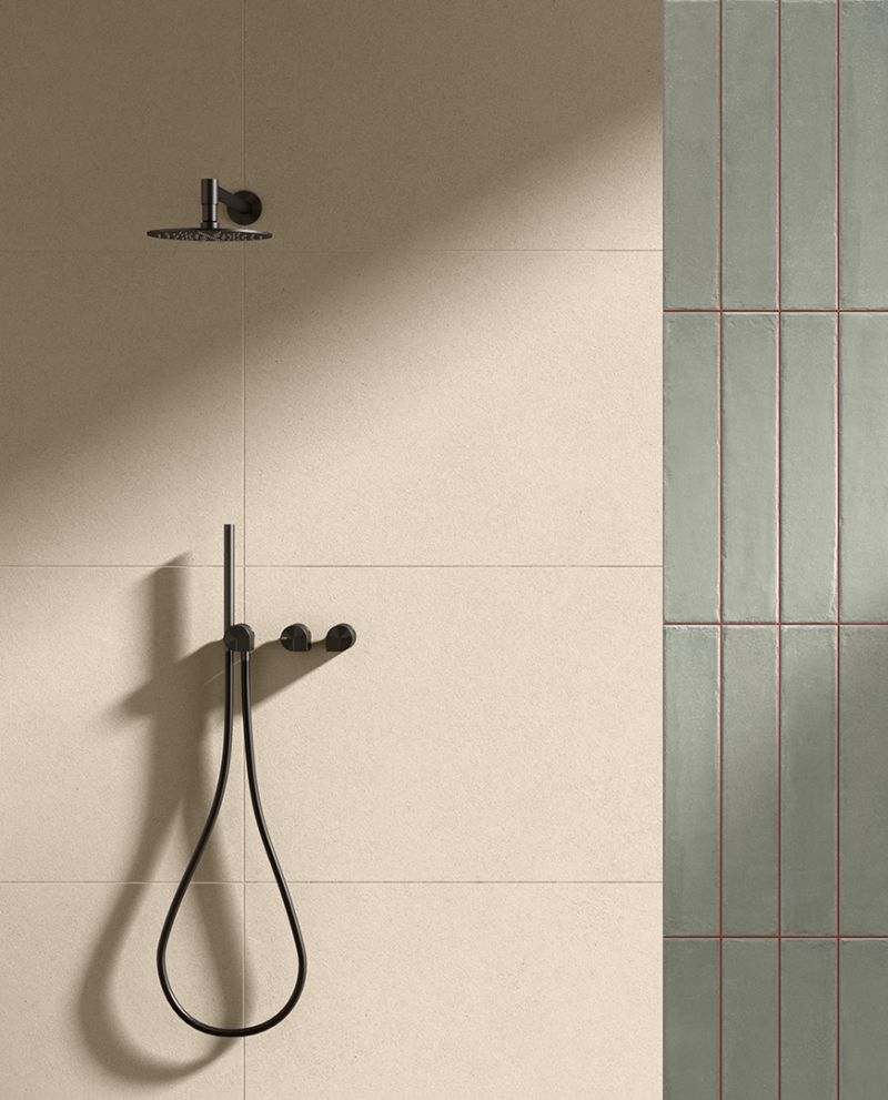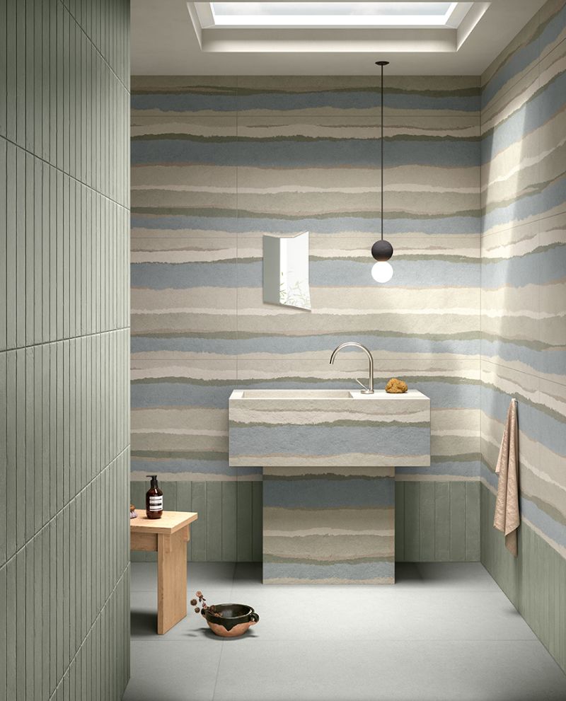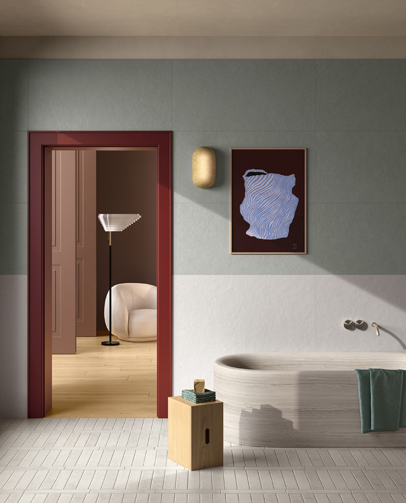 Přírodní barvy a pastelové nuance Bioterre se perfektně hodí k mramoru, dřevu, cihlám.